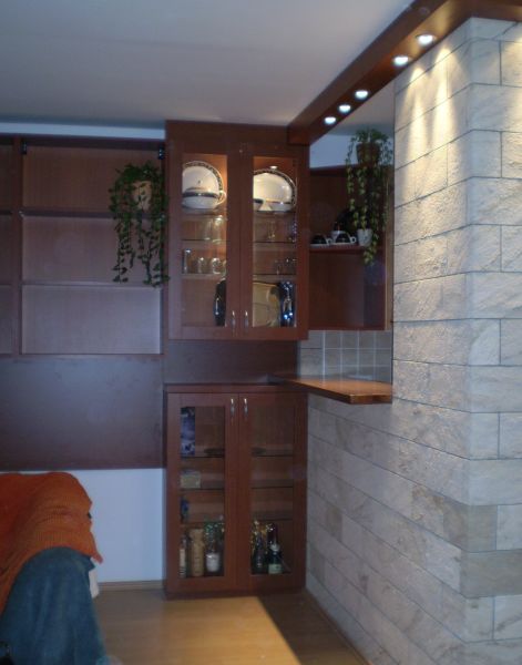 a bútor elemek mélységét kell 50, 40 cm-re lecsökkenteni . Pult felületre is szükség van , még 30 cm mélység is megoldja a kávé főző, vízforraló tárolását !